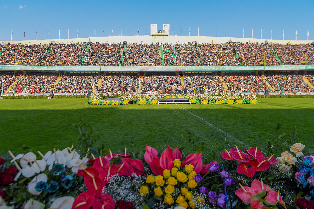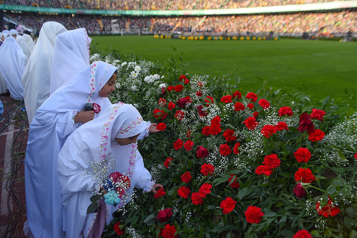 The grand gathering of the Imam Hasaniha Quranic Assembly was held today from ۳:۳۰ PM to ۶:۳۰ PM at the Azadi Sports Complex, with the enthusiastic presence of families.