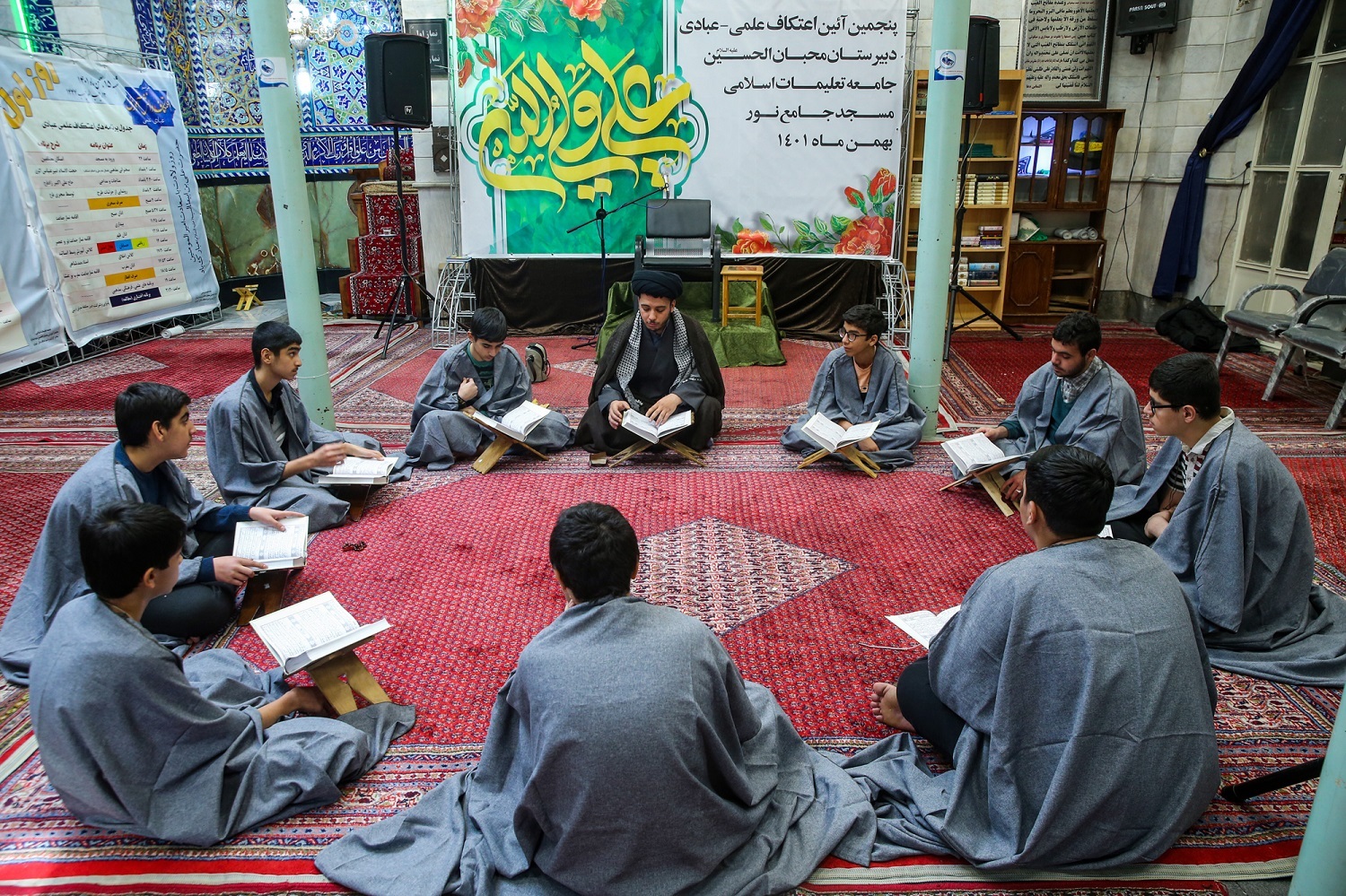 همزمان با میلاد پر برکت حضرت امیرالمومنین علی(ع) پنجمین آئین اعتکاف علمی - عبادی دبیرستان محبان‌الحسین(ع) جامعه تعلیمات اسلامی در مسجد جامع نور واقع در میدان خراسان تهران با حضور پرشور و طراوات دهه هشتادی‌ها در حال برگزاری است.