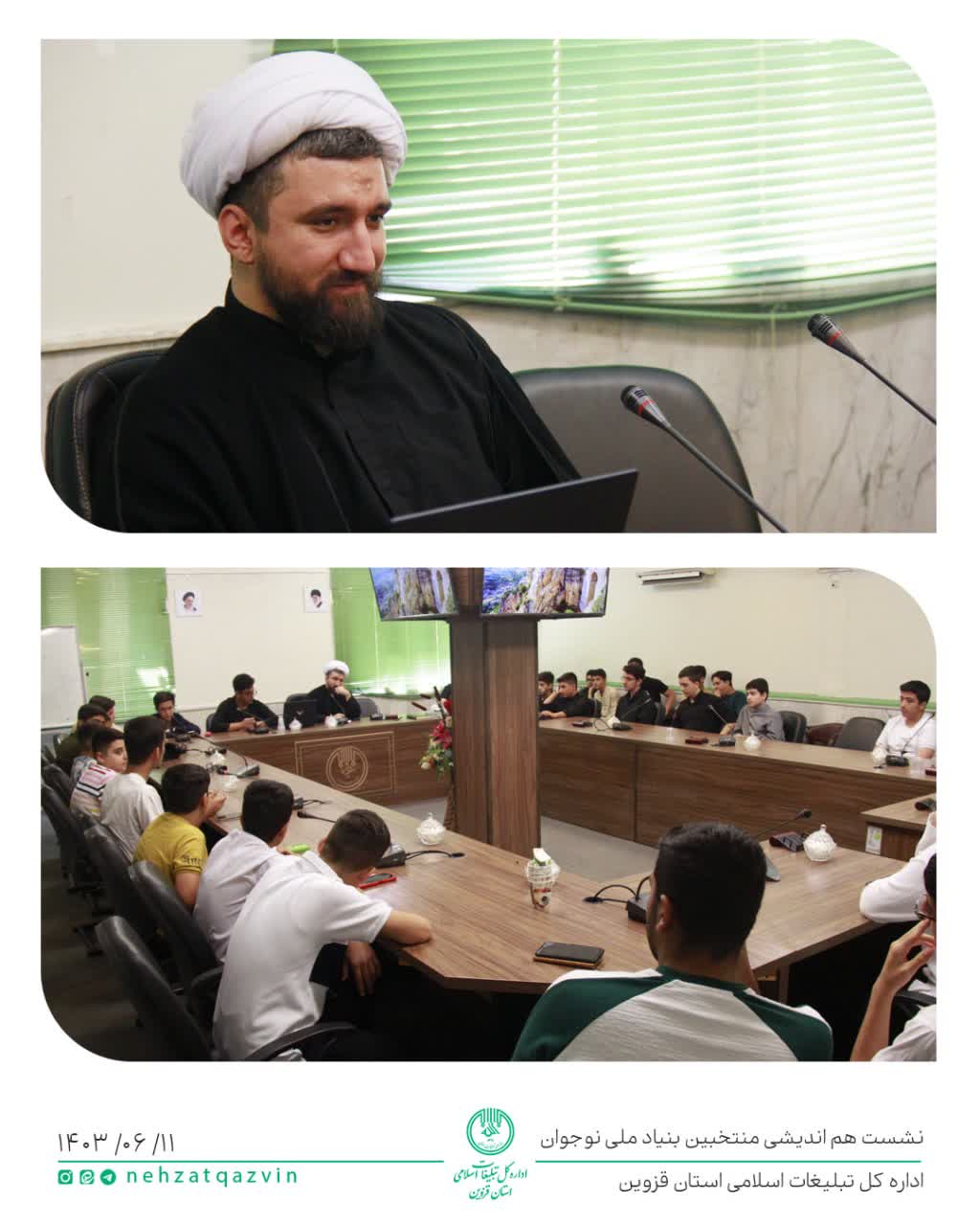 نشست هم اندیشی منتخبین بنیاد ملی نوجوانان استان قزوین با موضوع انتخاب هسته مرکزی اتاق فکر نوجوانان و برنامه ریزی جهت برگزاری برنامه های شش ماه دوم سال با حضور حجت الاسلام باباشاه وردی مسئول بنیاد ملی نوجوان استان قزوین