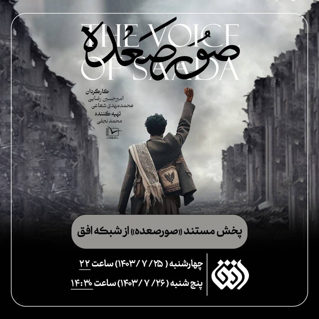 به گزارش روابط عمومی سازمان تبلیغات اسلامی، مستند «صورصعده» با روایتی از شکلگیری و تکامل جنبش انصارالله یمن، امروز ۲۵ مهرماه ساعت ۲۲ روی آنتن شبکه افق میرود.