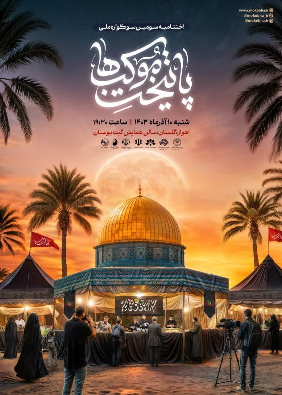 مراسم اختتامیه سومین سوگواره ملی پایتخت موکبها امشب دهم آذرماه ساعت ۱۹:۳۰ در سالن همایش گیت بوستان شهر اهواز برگزار میشود.