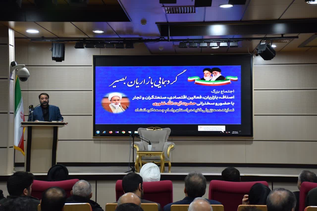 در این مراسم، آیتالله غفوری، نماینده محترم ولی فقیه در استان کرمانشاه و امام جمعه معزز این شهر، ضمن اشاره به اهمیت اقتصاد مقاومتی به عنوان یکی از راهبردهای اصلی کشور برای مقابله با فشارهای اقتصادی خارجی، اظهار داشت: «اقتصاد مقاومتی، یک الگوی نجاتبخش برای عبور از وابستگی و حرکت به سوی خودکفایی واقعی است که باید توسط همه بخشهای اقتصادی و تولیدی کشور جدی گرفته شود.»