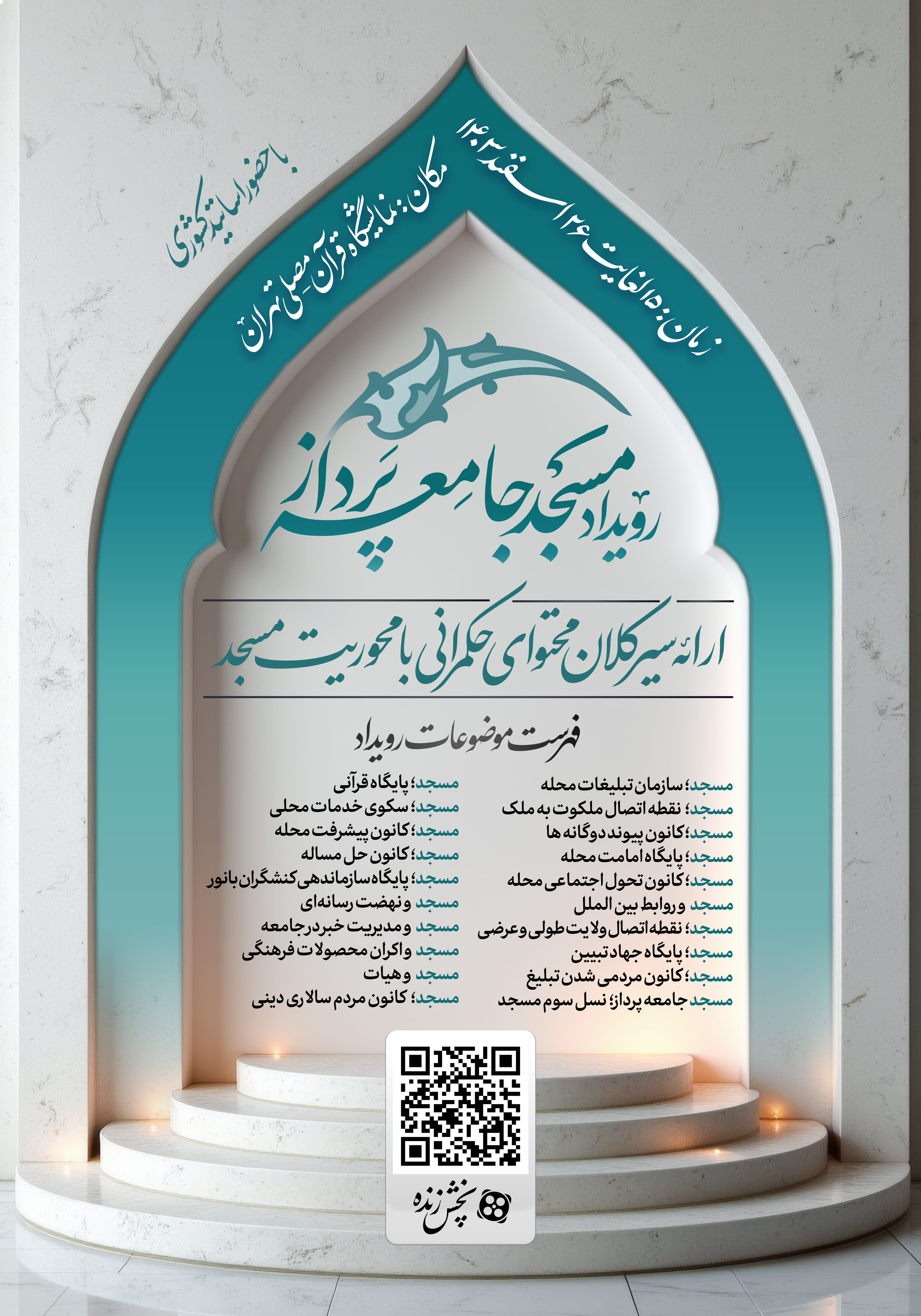 به گزارش روابط عمومی سازمان تبلیغات اسلامی، نظر به اهمیت تولید دانش و گفتمانسازی پیرامون مسجد و ترسیم نقش حیاتی آن از جنبههای مختلف تمدنی، معرفی، اجتماعی و کارکردی، سلسله نشستهای تخصصی با عنوان رویداد «مسجد جامعه پرداز» به همت بنیاد هدایت سازمان تبلیغات اسلامی در ماه مبارک رمضان و از 15 تا 26 اسفند ماه در نمایشگاه بینالمللی قرآن کریم واقع در مصلی بزرگ امام خمینی(ره) تهران برگزار خواهد شد.