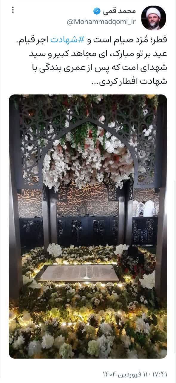 ۱۱ فروردین | حجتالاسلام قمی در صفحه شخصی خود نوشت؛